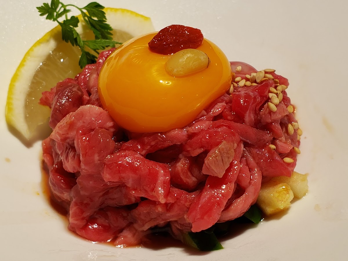 The restaurant is renowned for its signature dishes, each offering a unique and mouthwatering taste that keeps guests coming back. The 名物生カルビ (Fresh Kalbi) is a must-try. This tender and flavorful dish, made with high-quality beef, is expertly grilled to perfection right at your table. Another standout is the 深谷牛盛り合わせ (Fukaya Beef Assortment), which is a selection of premium local beef cuts that showcase the best of the region’s cattle. For those who enjoy raw dishes, the 生ユッケ (Raw Yukhoe) and 和牛ユッケ (Wagyu Yukhoe) are excellent choices, featuring thinly sliced, seasoned beef served with an egg yolk, offering a delicate yet rich flavor that melts in your mouth. If you're craving a balanced yakiniku experience, the 和牛中カルビ (Wagyu Chukalbi) is another crowd favorite that delivers a perfect blend of marbling and tenderness.